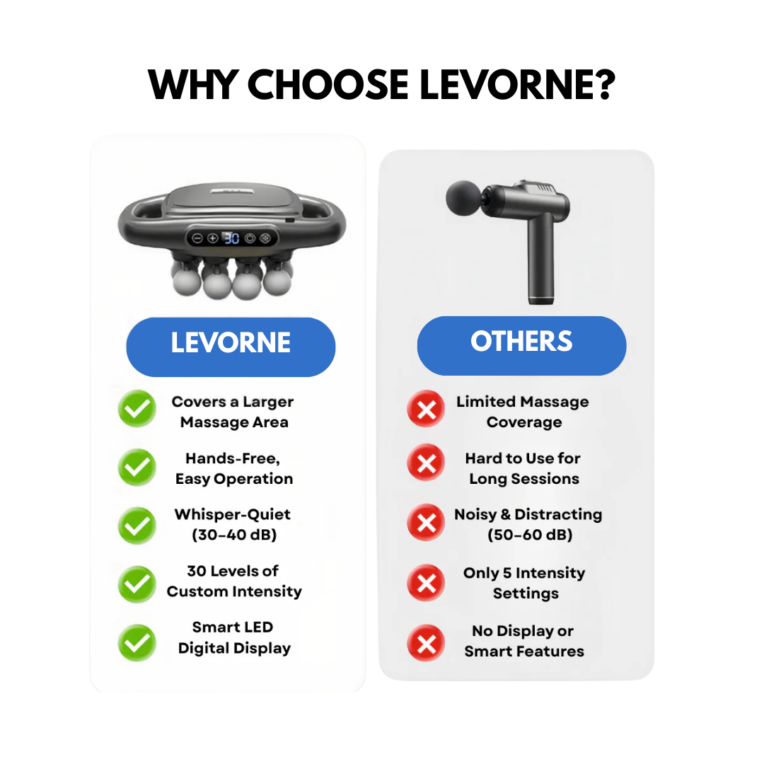 Most massage guns cut corners with harsh motors and flimsy attachments. Ours is built to last, fully rechargeable, and designed for maximum comfort and results - which is why it's trusted by physiotherapists, office workers, and chronic pain sufferers across the UK.