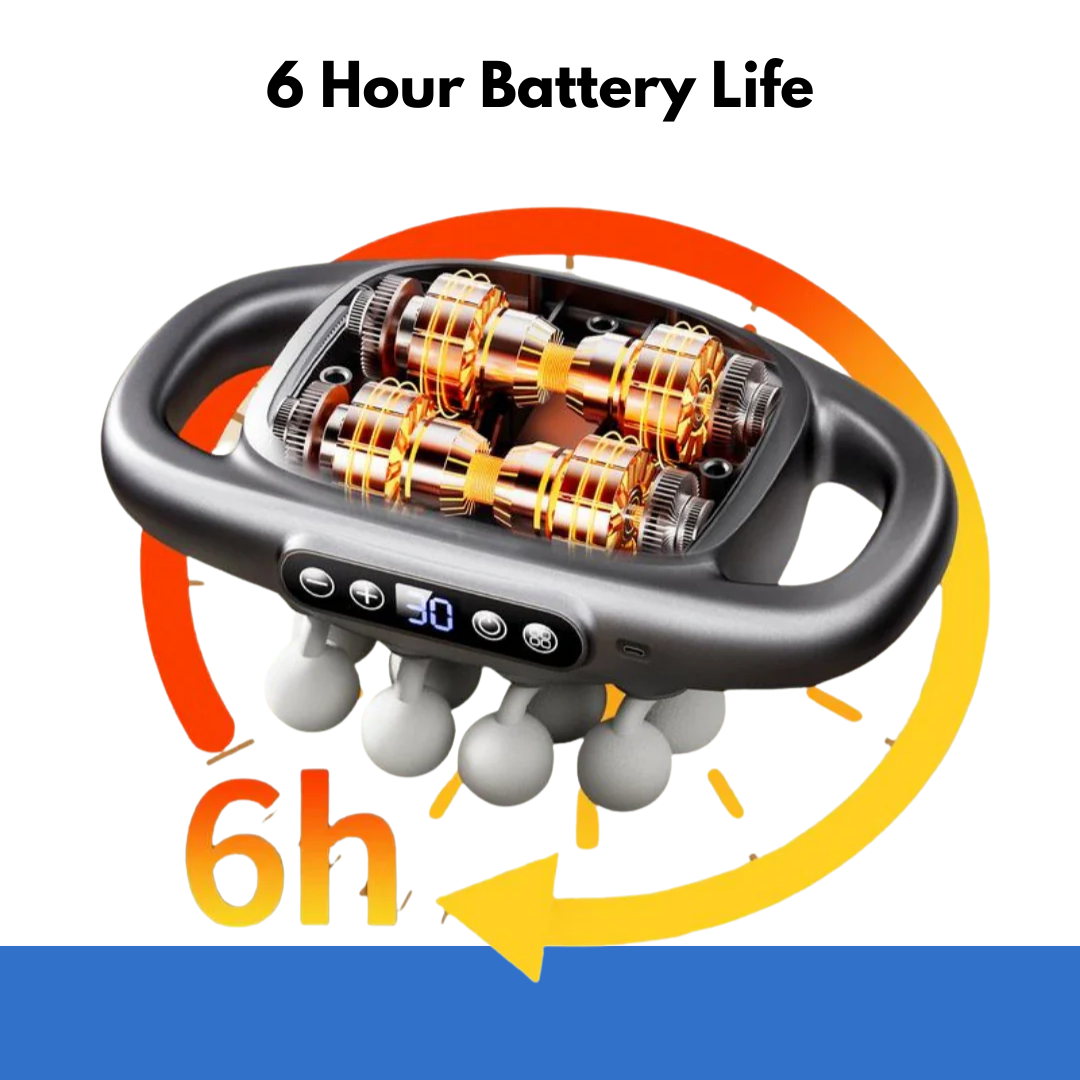 The multi-head design delivers targeted pressure to release muscle adhesions, improve circulation, and reduce nerve compression anywhere on your body — from neck to feet. Unlike single-point massage guns that can bruise, our 16-head system distributes pressure evenly for deep relief without pain.