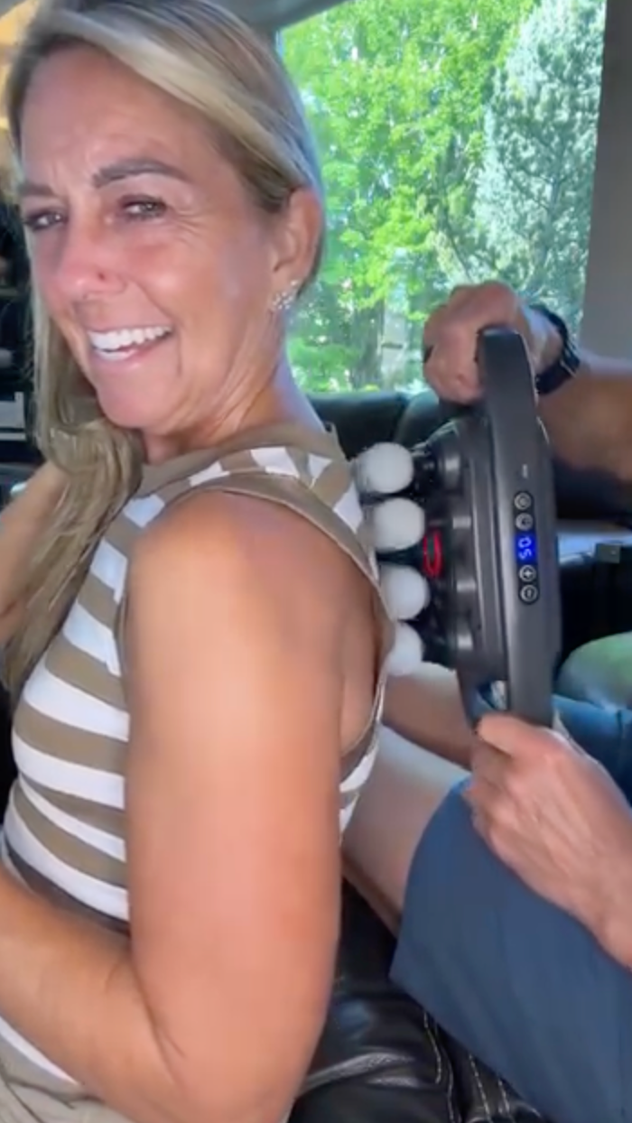Absolutely. Start on the lowest intensity and gradually increase as your muscles relax. The multiple contact points prevent the jabbing sensation common with traditional massage guns.